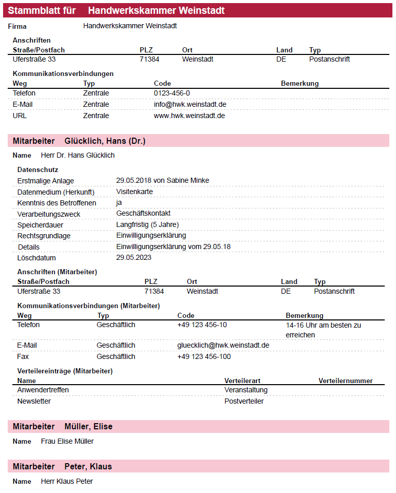 Die Pflege von Kontaktdaten in ZAM® sorgt für Kommunikation, die sich vorbildlich nach heutigen Maßstäben richtet.